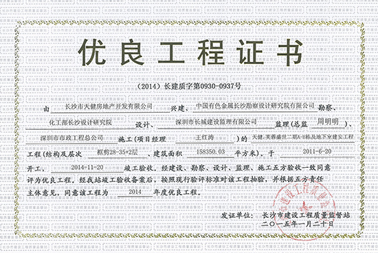 芙蓉盛世二期榮獲2014年度優(yōu)良工程