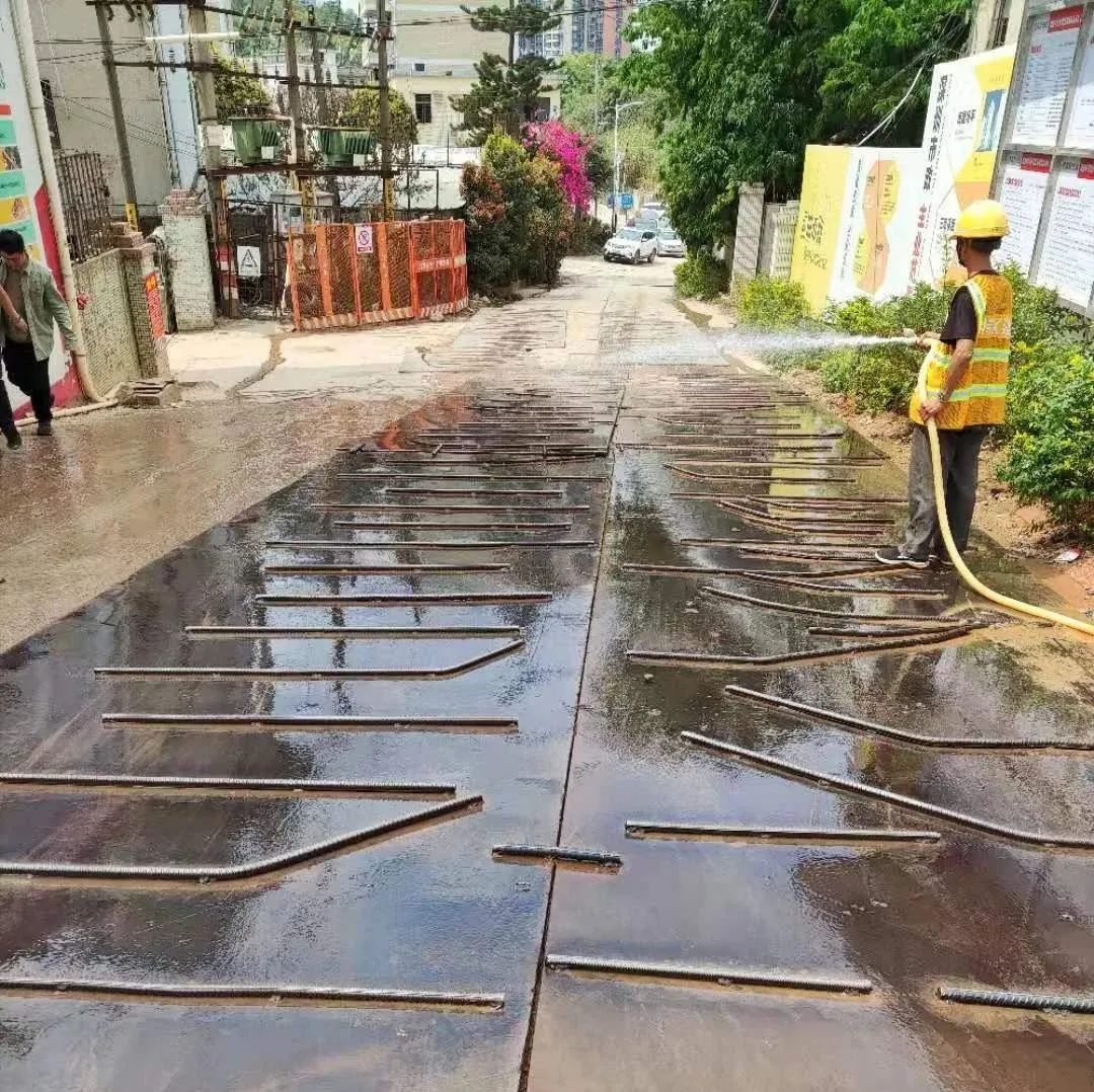 觀瀾中學(xué)改擴(kuò)建工程項(xiàng)目為EPC管理模式,通過“設(shè)計(jì)+施工”強(qiáng)強(qiáng)聯(lián)合,將“要我優(yōu)化”轉(zhuǎn)變?yōu)椤拔乙獌?yōu)化”,確保項(xiàng)目綠色施工高水平推進(jìn)。項(xiàng)目自開工建設(shè)以來,始終貫徹“四節(jié)一環(huán)?!焙诵睦砟?,持續(xù)強(qiáng)化環(huán)保體系建設(shè),深入推進(jìn)綠色環(huán)保施工技術(shù)應(yīng)用,全面落實(shí)揚(yáng)塵污染防治“7個(gè)100%”,加大人、財(cái)、物投入,重點(diǎn)做好場地封閉、車輛進(jìn)出沖洗、道路鋪設(shè)鋼板保護(hù)及日常清洗、建設(shè)綠化邊坡防止水土流失、裸土及物料覆蓋、建設(shè)污水處理設(shè)施等方面工作。場地內(nèi)配備霧炮機(jī)、灑水車及圍擋噴淋設(shè)施,常態(tài)化開展?jié)穹ㄗ鳂I(yè)。安裝揚(yáng)塵實(shí)時(shí)監(jiān)控設(shè)備,加大日常巡查督導(dǎo)和責(zé)任追究力度,同時(shí)優(yōu)化施工技術(shù),嚴(yán)格控制大型設(shè)備作業(yè)施工時(shí)間,盡可能減少夜間施工。