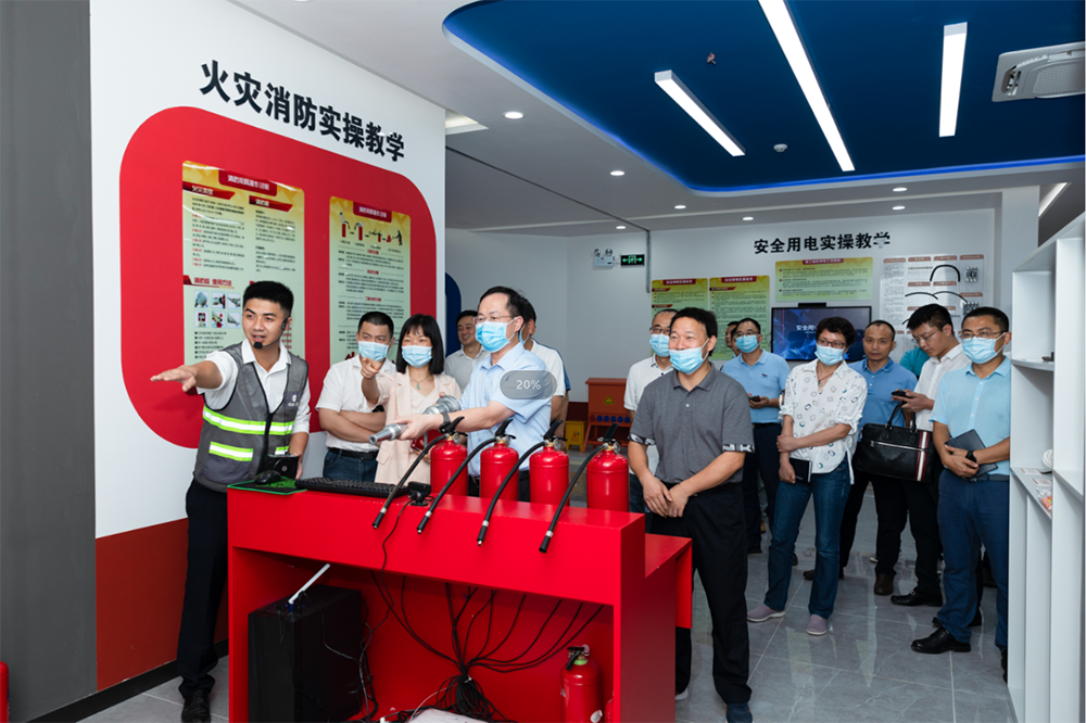 唐建偉一行現(xiàn)場聽取了工作人員對特區(qū)建工學(xué)院硬件設(shè)施、培訓(xùn)課程、施工現(xiàn)場情景展示等情況的介紹,先后在學(xué)院教學(xué)樓展廳、建筑安全實景教學(xué)區(qū)、工人實訓(xùn)區(qū)、安全體驗區(qū)等場所進行觀摩,親身體驗各項目的培訓(xùn)內(nèi)容。