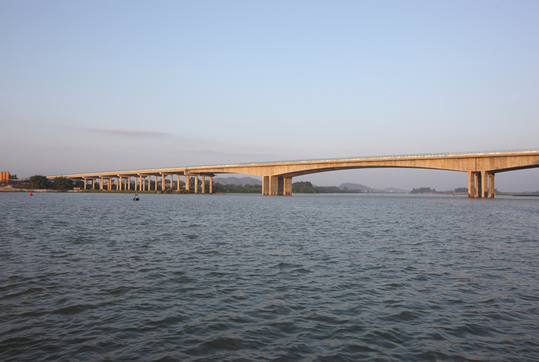 東江特大橋是惠大疏港高速公路(惠州長(zhǎng)湖至澳頭公路)上的一座特大型預(yù)應(yīng)力混凝土連續(xù)剛構(gòu)橋,該橋共28跨,上部結(jié)構(gòu)為10×25m(預(yù)應(yīng)力砼連續(xù)小箱梁)+(35+50+35)m(預(yù)應(yīng)力砼現(xiàn)澆箱梁)+ 6×35m(預(yù)應(yīng)力砼連續(xù)小箱梁)+(90+150+90)m(預(yù)應(yīng)力砼連續(xù)剛構(gòu))+ 6×35m(預(yù)應(yīng)力砼連續(xù)小箱梁), 橋梁總長(zhǎng)1126.72m。全橋分兩幅,兩幅之間凈距50cm。主橋(19#墩~22#墩)全長(zhǎng)為330m,跨徑布置為三跨(90+150+90)m連續(xù)剛構(gòu)。合同造價(jià)為15496萬,于2012年11月20日正式開工,2015年10月30日主體全部完成。該工作榮獲2014年“深圳市安全生產(chǎn)與文明施工優(yōu)良工地”,申報(bào)的“深圳市優(yōu)質(zhì)結(jié)構(gòu)工程”已完成專家評(píng)審;工法創(chuàng)新方面已獲得《精軋螺紋鋼掛籃后錨預(yù)埋件》國(guó)家實(shí)用新型專利,完成QC成果《現(xiàn)澆箱梁裂縫控制》(獲廣東省市政行業(yè)協(xié)會(huì)三等獎(jiǎng)),《鋼纖維聚合物結(jié)構(gòu)混凝土箱梁施工技術(shù)》科技成果鑒定為“國(guó)際先進(jìn)”,并獲得2015年深圳市第一批市級(jí)工法,《滿堂支架流體仿真模擬預(yù)壓施工技術(shù)》科技成果鑒定為“國(guó)內(nèi)領(lǐng)先”,準(zhǔn)備進(jìn)行2015年廣東省省級(jí)工法申報(bào)。