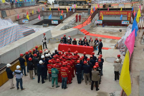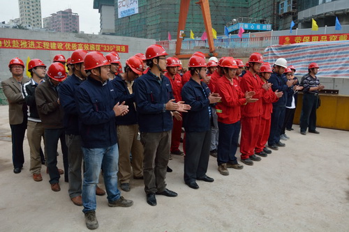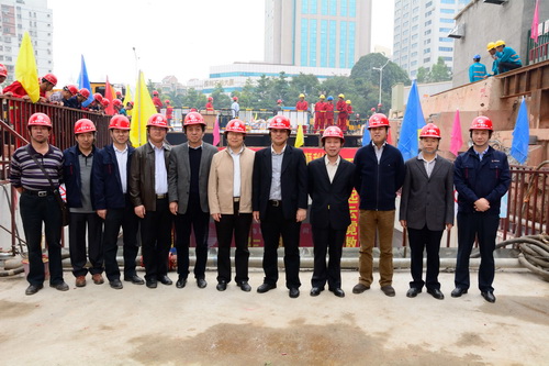 2014年12月10日上午,集團(tuán)公司總經(jīng)理宋揚(yáng)、黨委副書(shū)記童慶火、監(jiān)事會(huì)主席肖杰安、地鐵9號(hào)線公司王文和部長(zhǎng)、東部監(jiān)理李建軍總監(jiān)等參加了地鐵項(xiàng)目景梅區(qū)間左線盾構(gòu)始發(fā)儀式。始發(fā)儀式上,集團(tuán)副總經(jīng)理尹劍輝、地鐵公司業(yè)主代表王文和分別進(jìn)行致辭,并勉勵(lì)項(xiàng)目部全體員工要克服困難,確?!?.30”如期洞通。10點(diǎn)18分,隨著集團(tuán)總經(jīng)理宋揚(yáng)鄭重宣布:“深圳1號(hào)”盾構(gòu)—始發(fā)?,F(xiàn)場(chǎng)頓時(shí)鞭炮齊鳴,掌聲雷動(dòng),“深圳Ⅰ號(hào)”盾構(gòu)在隆隆的轟鳴聲中緩緩前行,正式開(kāi)始掘進(jìn)。